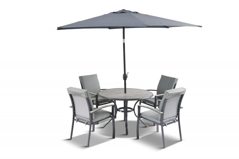 Turin 4 Seat Dining Set with 2.5m Parasol